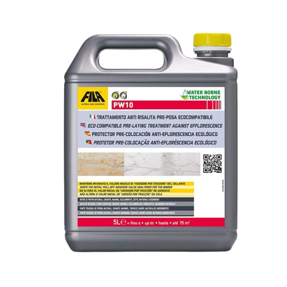 FILA PW10 reprezentuje niezwykle uniwersalny produkt, znajdujący zastosowanie w rozmaitych sytuacjach. Można go aplikować na spodnią stronę płytek granitowych przed montażem, tworząc skuteczną barierę ochronną przeciwko wilgoci i zanieczyszczeniom z podłoża.