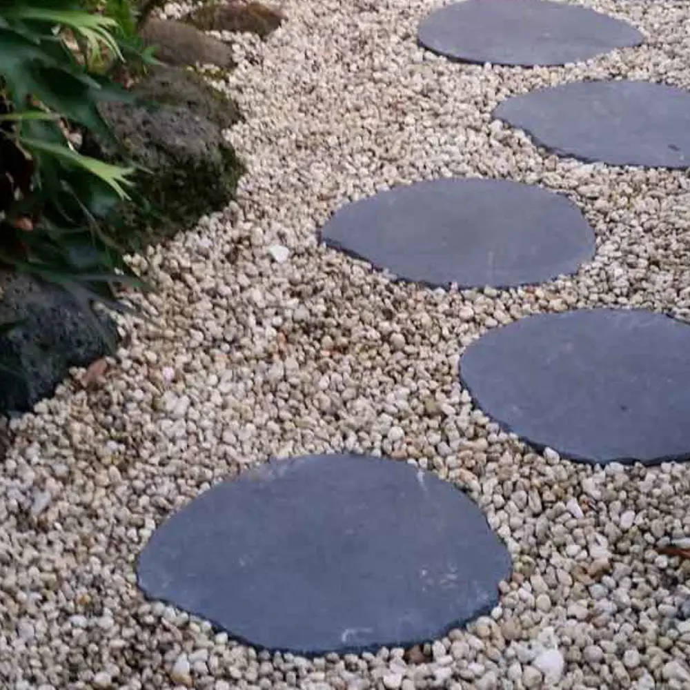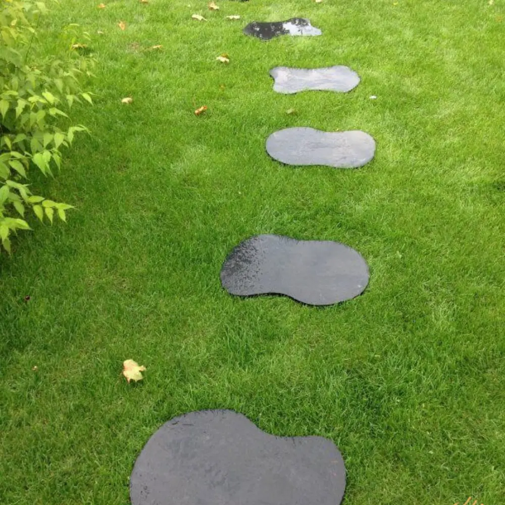 - Ścieżki ogrodowe – Doskonałe rozwiązanie do kreowania stylowych, solidnych duktów w ogrodzie. Klasyczna czarna tonacja oraz naturalna struktura harmonijnie współgrają z zielenią, tworząc spójną kompozycję krajobrazową.