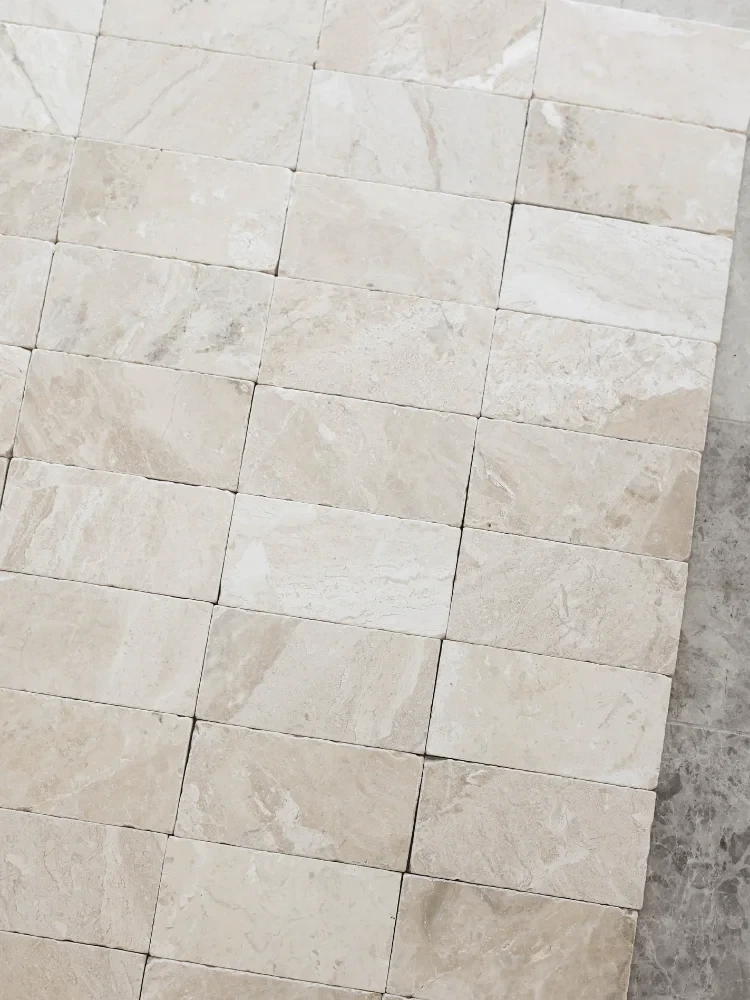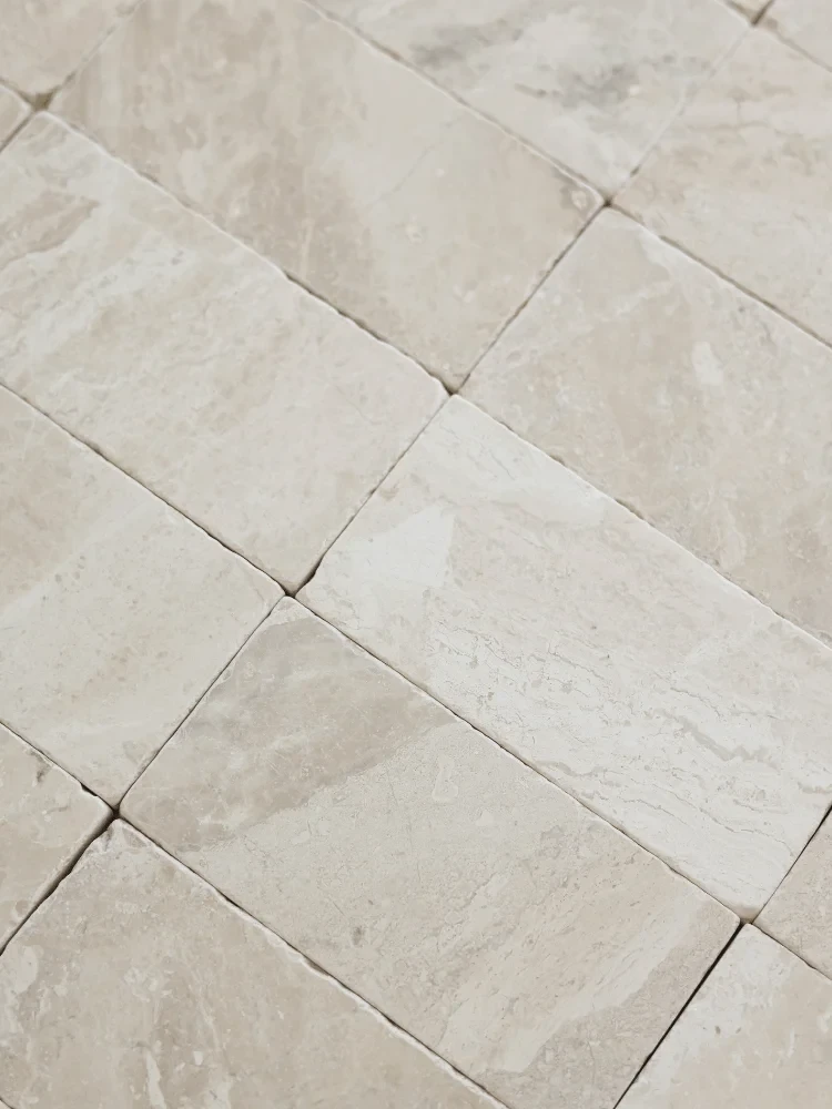 Płytka marmurowa Queen Beige | Coffee White Brick to wyjątkowe połączenie naturalnego kamienia i klasycznej estetyki. Paleta barw wprowadza do wnętrz harmonię i przytulność. Wykończenie bębnowane nadaje powierzchni lekko zaokrąglone krawędzie oraz postarzaną strukturę, podkreślając naturalny charakter marmuru. To doskonały wybór dla osób ceniących autentyczne materiały i ponadczasowy styl.