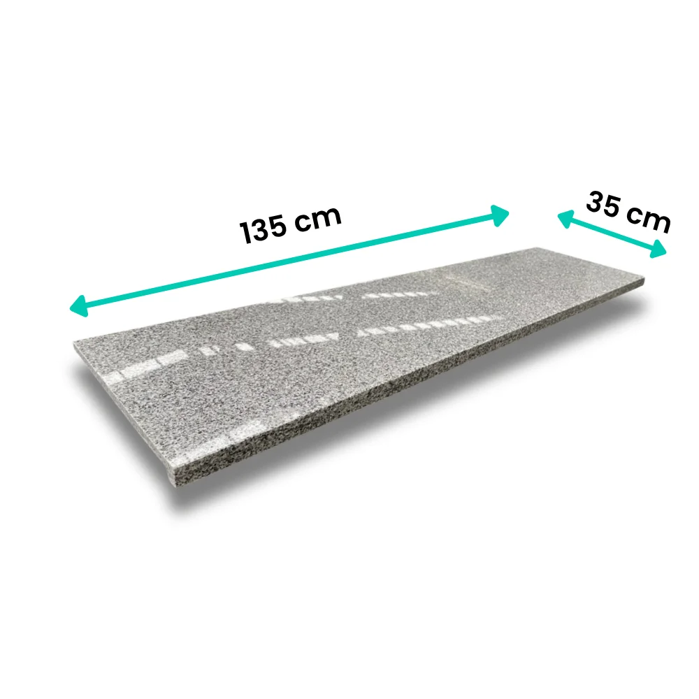 Schodowa nakładka (parapet) z polerowanego granitu z prostym noskiem. Dodatkowe 3 cm grubości pozwala na uzyskanie eleganckiego wyglądu schodów. |