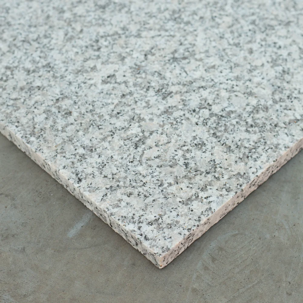 Stopnica granitowa szara płomieniowana Bianco Sardo G602 150x33x2 cm – wytrzymały granit z antypoślizgową powierzchnią. Idealna do schodów wewnętrznych i zewnętrznych.