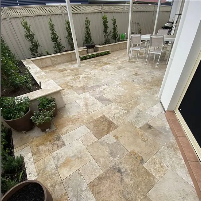 Trawertyn posiada bardzo szerokie zastosowanie w budownictwie i designie wnętrz. Płytki trawertynowe z oferty MarketStone.pl to gotowe schodów, parapetów i okładzin do zastosowania wewnątrz pomieszczeń oraz na zewnątrz – w ogrodzie, na podjazudzie, tarasie czy elewacji budynku. Komplet zawiera 0,742m2 materiału, gotowy do bezpośredniego montażu i aranżacji.