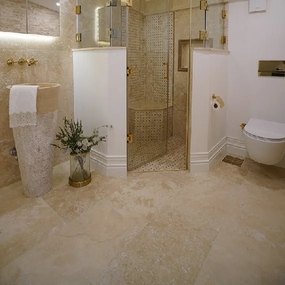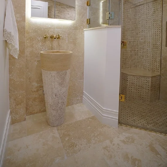 - Materiał: naturalny trawertyn – niezwykle wytrzymały i trwały.