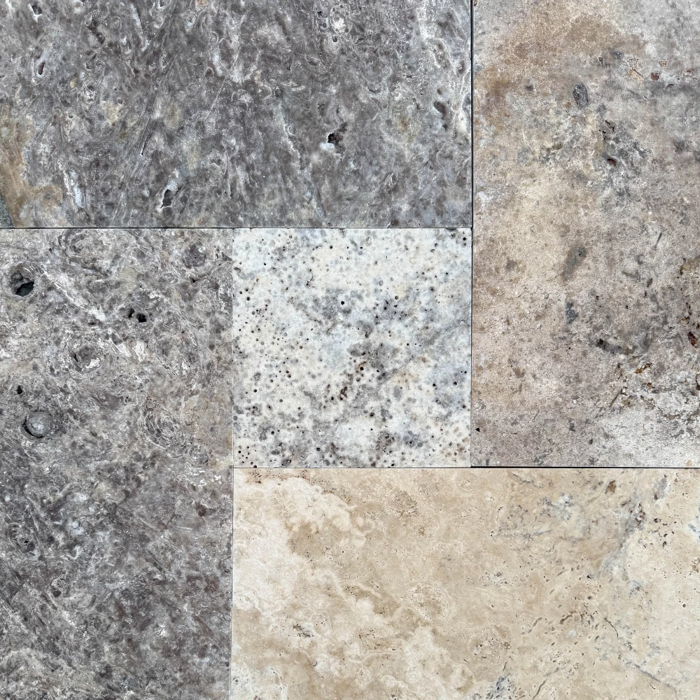 Trawertyn Silver Latte Bębnowany French Pattern 3cm – Komplet Rzymski